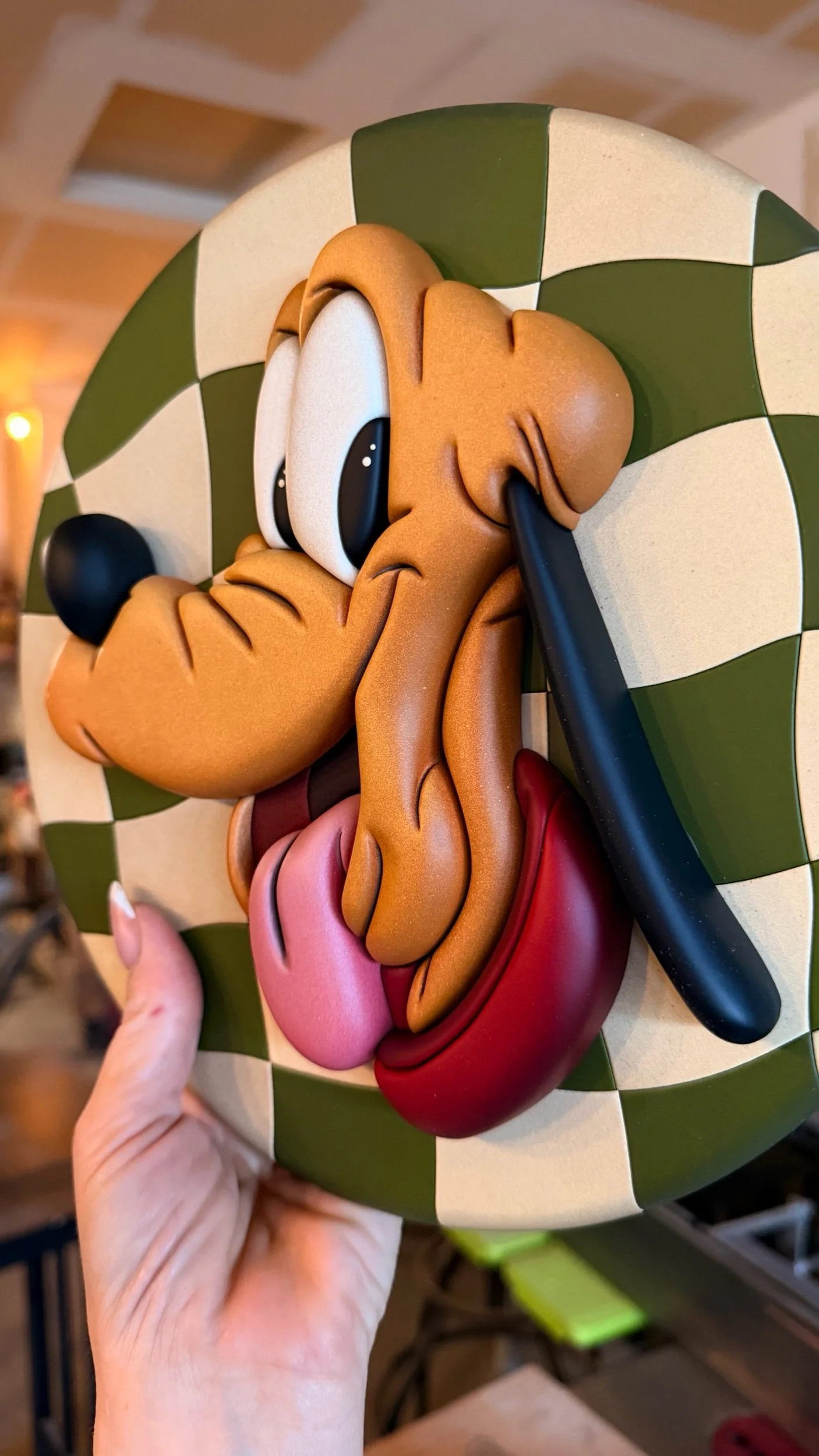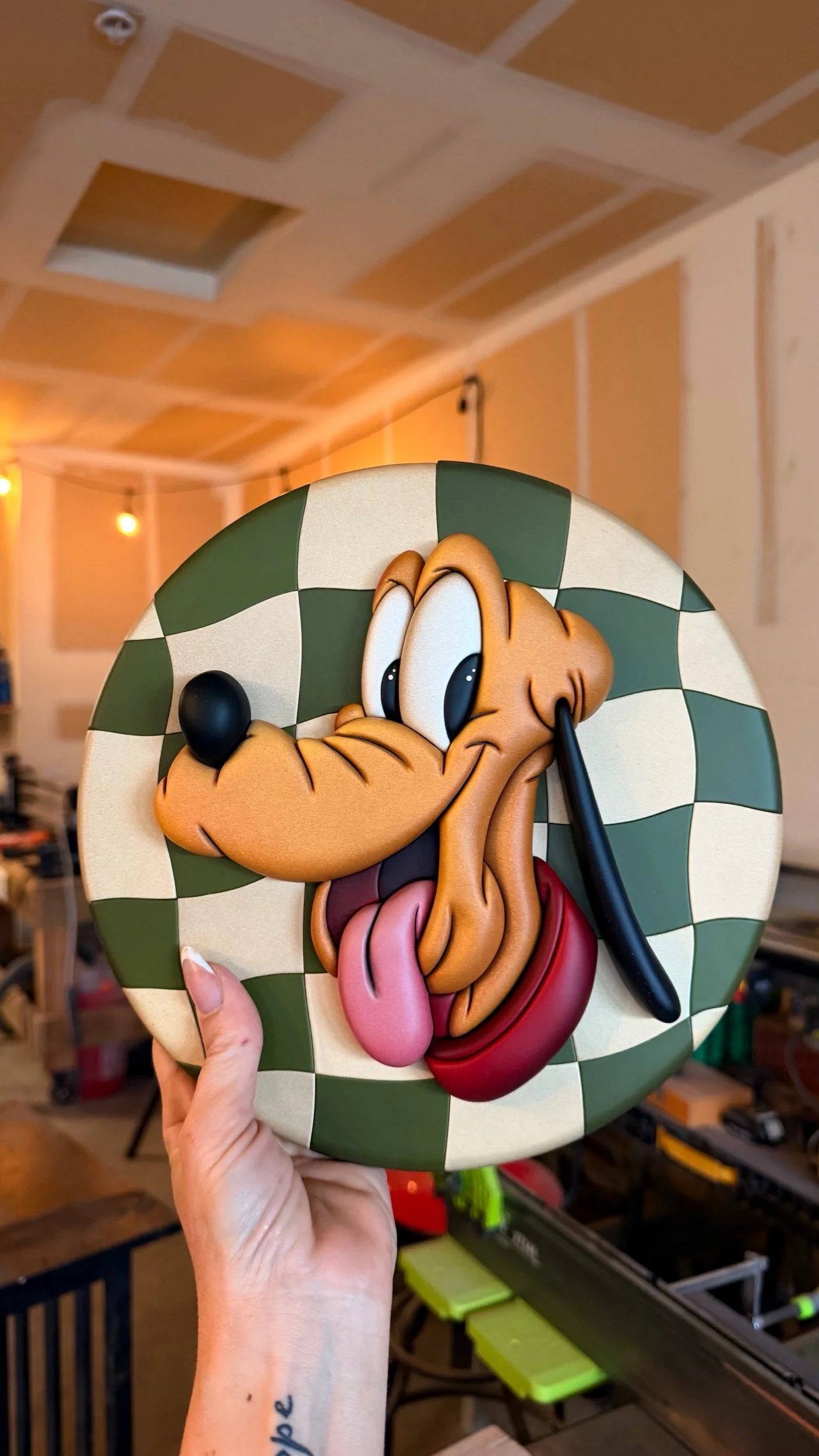 Your favorite cartoon dog featured on a custom wavy checker print round. The retro style and colors will add a pop of nostalgic fun to any room.